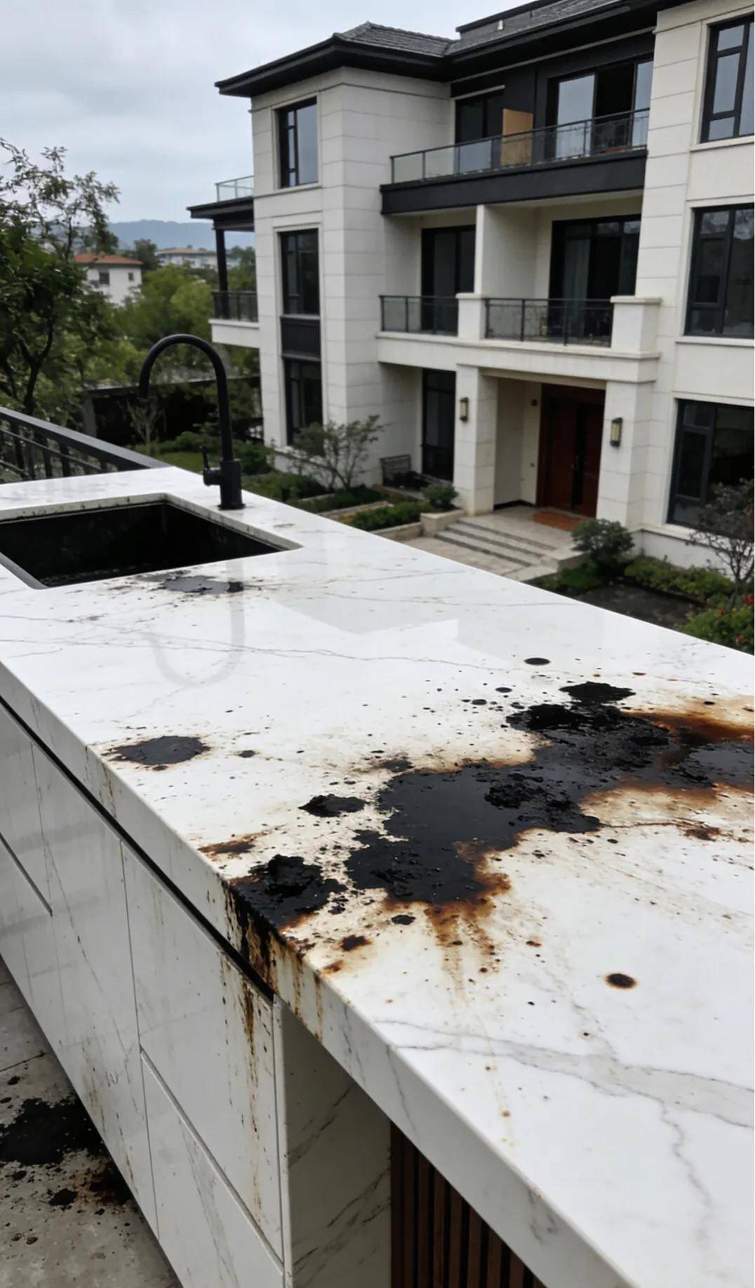 还有地方因为岩板台面太脆,切菜时不小心崩裂划伤手。