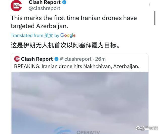 可对阿塞拜疆出手,倒是颇令人意外。当天,阿塞拜疆外交部表示,两架伊朗无人机在该国坠毁,造成两人受伤,并导致纳希切万国际机场建筑受损。阿方立即表示谴责,并召见伊朗驻阿大使。