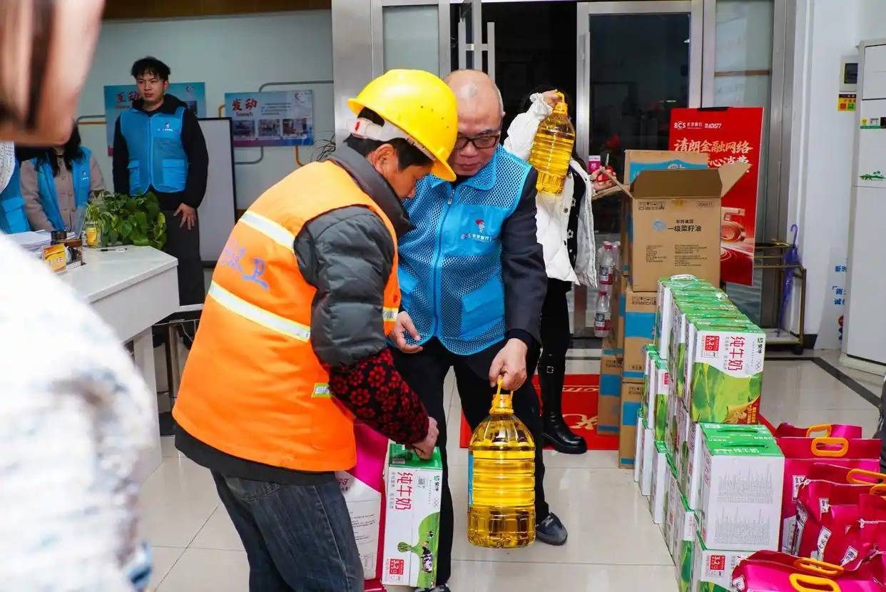 社区居委会内暖意融融,结束早班清扫工作的环卫工人们陆续走进这里,他们橘红色的工作服在人群中格外亮眼。“李大姐,辛苦了!来,先喝口水,这是我们准备的一点心意。”长沙银行银德支行的工作人员微笑着迎上前去,将精心准备的慰问品递到环卫工人手中。礼品袋里不仅有实用的生活物资,还放入了印制精美的金融知识宣传折页。